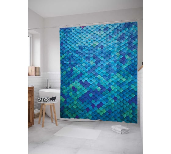 Штора (занавеска) для ванной JoyArty "Мелкие чешуйки" из сатена, 180х200 см с крючками, sc_2393