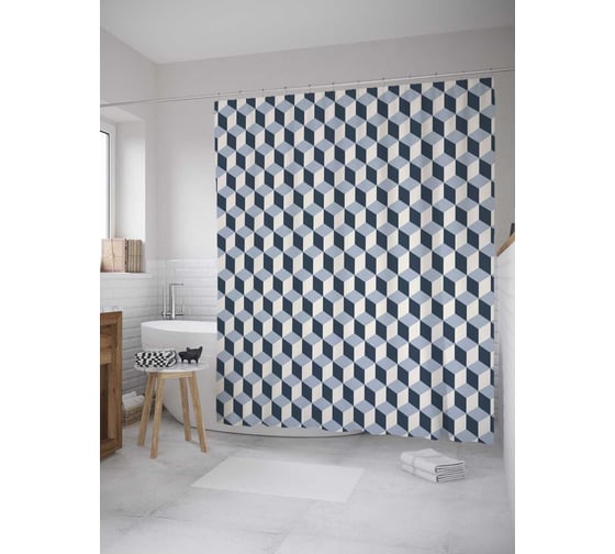 Сопутствующие товары для шторки-занавески JOYARTY Мелкий кубизм из сатена, 180х200 см с крючками