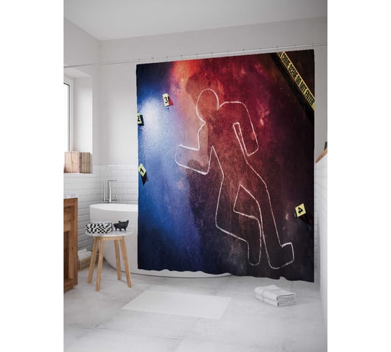 Штора (занавеска) для ванной JoyArty "Место убийства" из сатена, 180х200 см с крючками, sc_38285