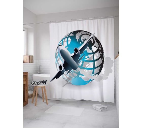 Штора (занавеска) для ванной JoyArty "Межконтинентальные перелеты" из сатена, 180х200 см с крючками, sc_5619