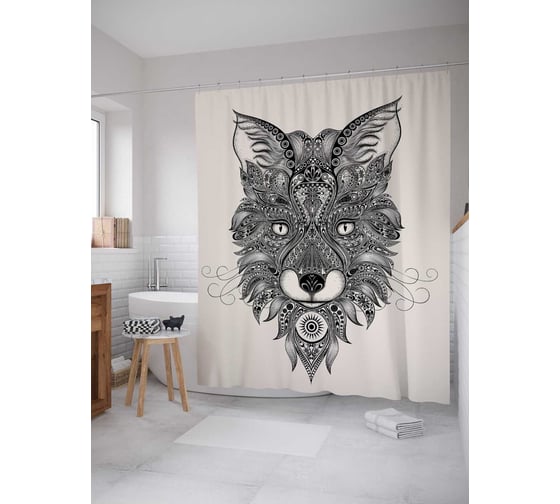 Штора (занавеска) для ванной JoyArty "Мифический волк" из сатена, 180х200 см с крючками, sc_16903