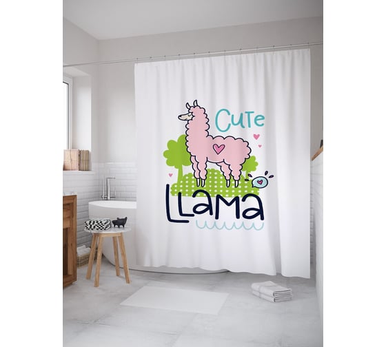 Сопутствующие товары для шторки-занавески JOYARTY Милая лама из сатена, 180х200 см с крючками
