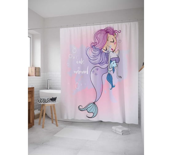 Штора (занавеска) для ванной JoyArty "Милая русалка" из сатена, 180х200 см с крючками, sc_12844