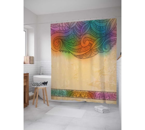 Штора (занавеска) для ванной JoyArty "Мираж с завитками" из сатена, 180х200 см с крючками, sc_3895