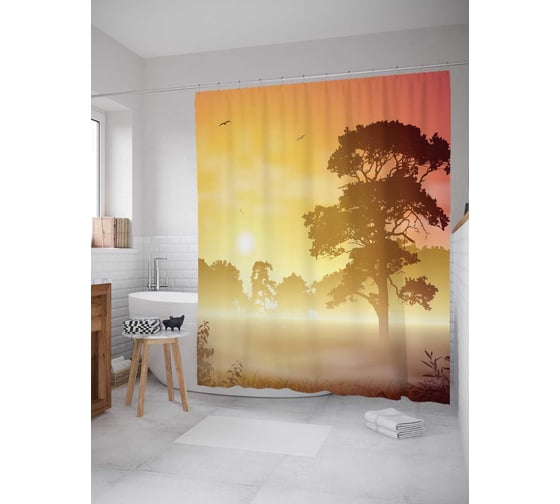 Штора (занавеска) для ванной JoyArty "Мирное дерево следит за солнцем" из сатена, 180х200 см с крючками, sc_15837