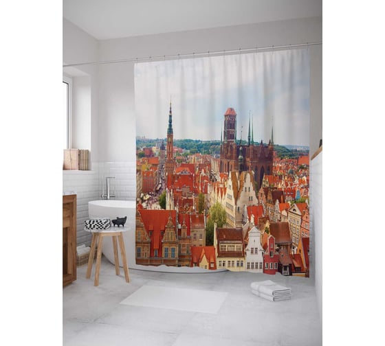 Штора (занавеска) для ванной JoyArty "Мирное время" из сатена, 180х200 см с крючками, sc_14427