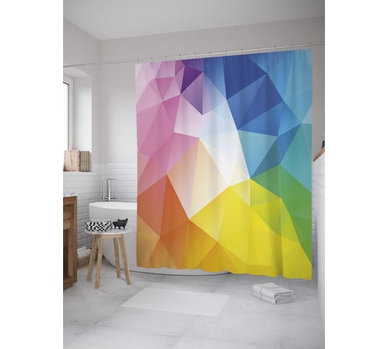 Штора (занавеска) для ванной JoyArty "Многоцветные кристаллы" из сатена, 180х200 см с крючками, sc_31987
