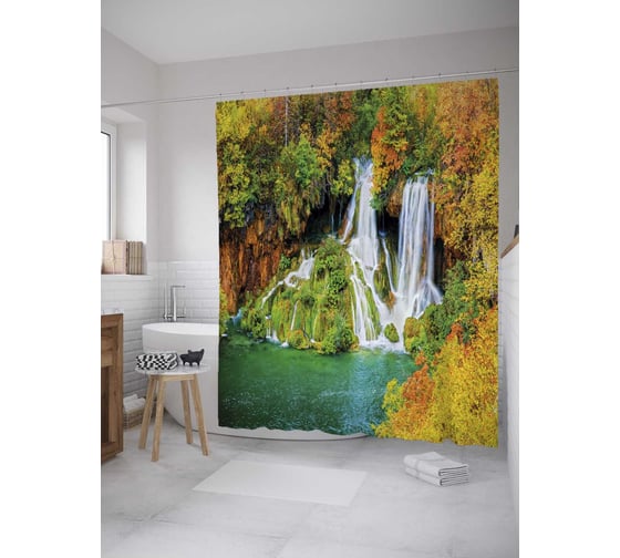 Штора (занавеска) для ванной JoyArty "Многоярусный водопад" из сатена, 180х200 см с крючками, sc_36599