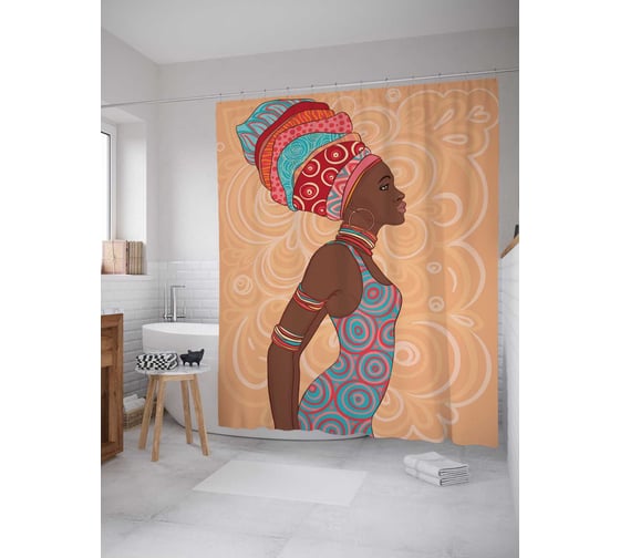 Штора (занавеска) для ванной JoyArty "Мода африканок" из сатена, 180х200 см с крючками, sc_23268