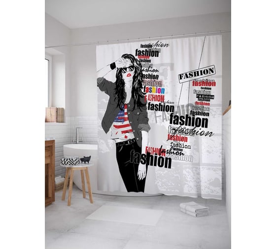 Штора (занавеска) для ванной JoyArty "Модный образ" из сатена, 180х200 см с крючками, sc_21045