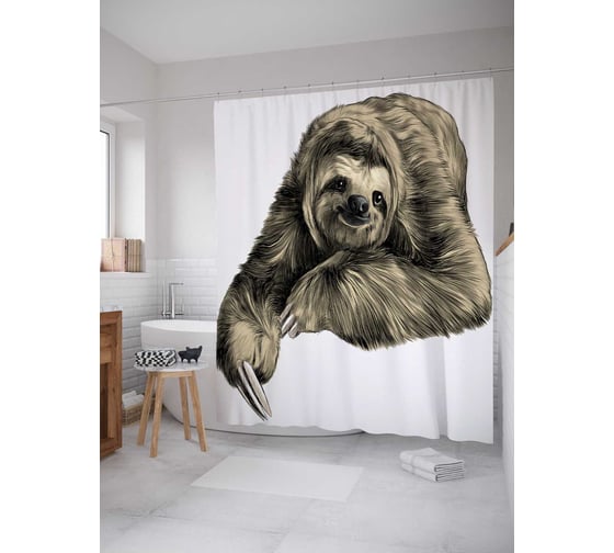 Штора (занавеска) для ванной JoyArty "Мохнатый ленивец" из сатена, 180х200 см с крючками, sc_37848