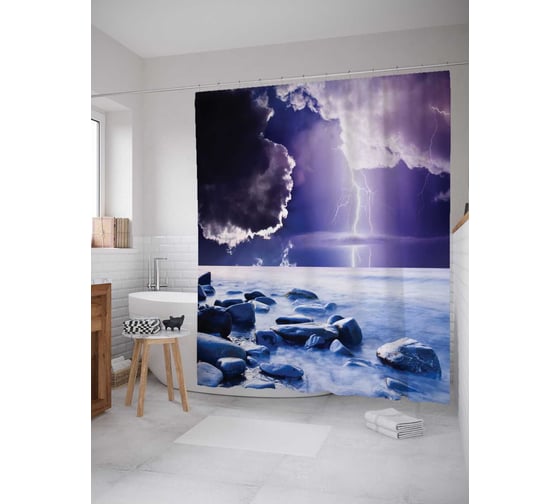 Штора (занавеска) для ванной JoyArty "Молния играет с морем" из сатена, 180х200 см с крючками, sc_16305