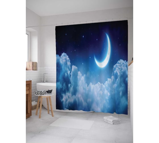 Штора (занавеска) для ванной JoyArty "Молодая луна" из сатена, 180х200 см с крючками, sc_12911