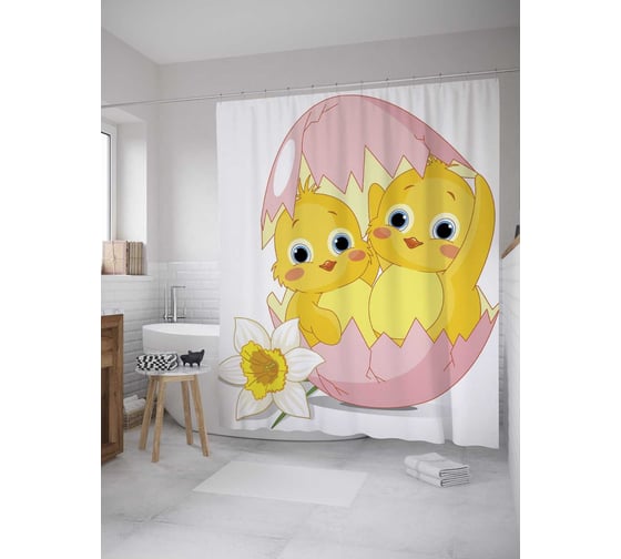 Штора (занавеска) для ванной JoyArty "Молодые цыплята" из сатена, 180х200 см с крючками, sc_8509