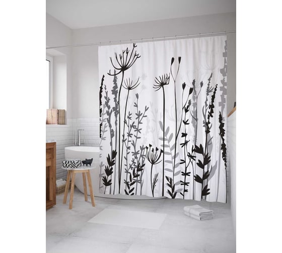 Сопутствующие товары для шторки-занавески JOYARTY Монохромная флора из сатена, 180х200 см с крючками