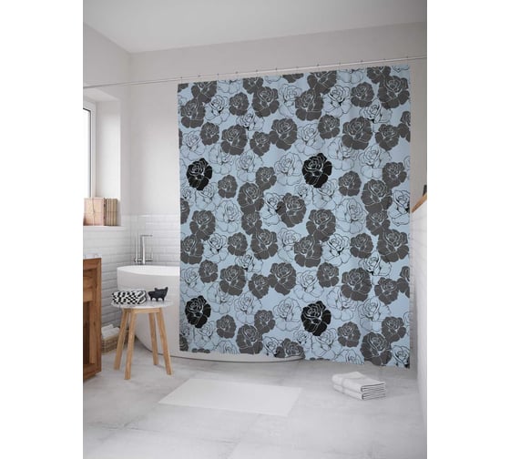 Сопутствующие товары для шторки-занавески JOYARTY Монохромная поляна цветов из сатена, 180х200 см с крючками