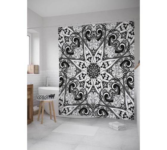 Штора (занавеска) для ванной JoyArty "Монохромная вязь" из сатена, 180х200 см с крючками, sc_32387