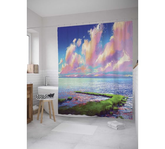 Штора (занавеска) для ванной JoyArty "Морская тропинка" из сатена, 180х200 см с крючками, sc_9259