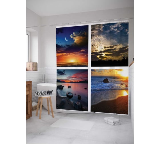 Штора (занавеска) для ванной JoyArty "Морские фантазии" из сатена, 180х200 см с крючками, sc_7774