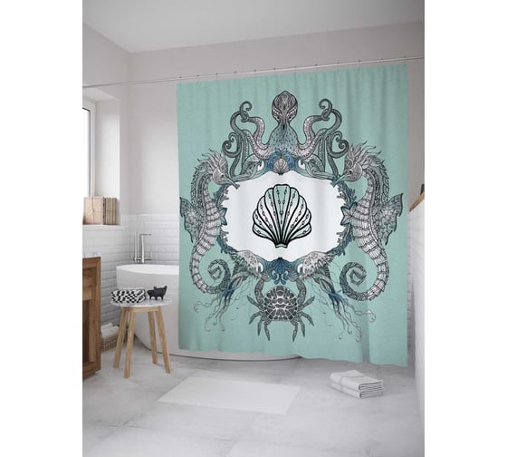 Штора (занавеска) для ванной JoyArty "Морской совет" из сатена, 180х200 см с крючками, sc_8620