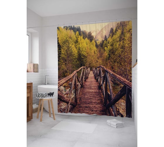 Штора (занавеска) для ванной JoyArty "Мост предков" из сатена, 180х200 см с крючками, sc_12136