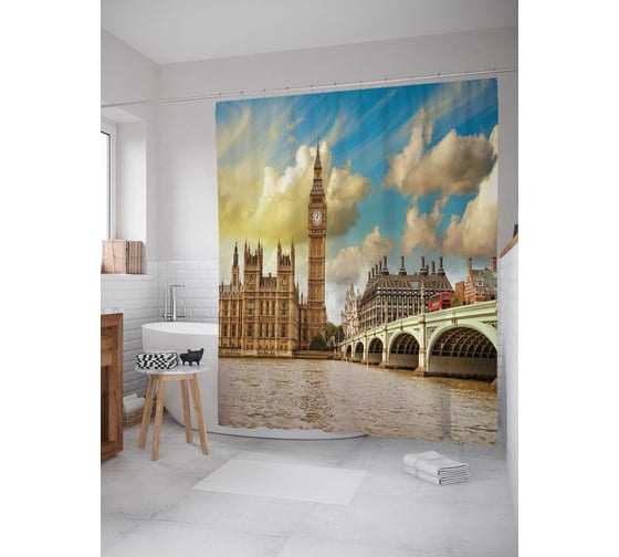 Штора (занавеска) для ванной JoyArty "Мост у Биг-Бена" из сатена, 180х200 см с крючками, sc_2713
