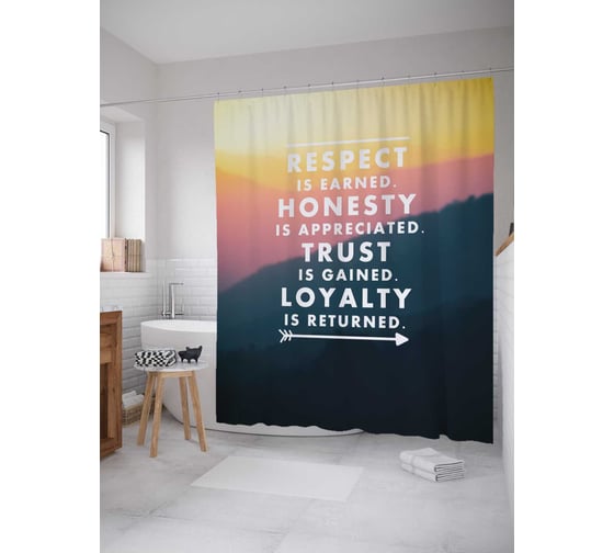 Штора (занавеска) для ванной JoyArty "Мотивация быть лучше" из сатена, 180х200 см с крючками, sc_78620