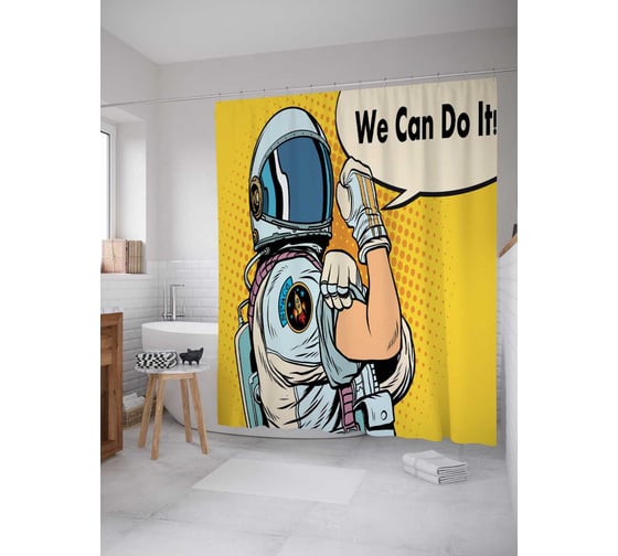 Штора (занавеска) для ванной JoyArty "Мотивирующий космонавт" из сатена, 180х200 см с крючками, sc_41383