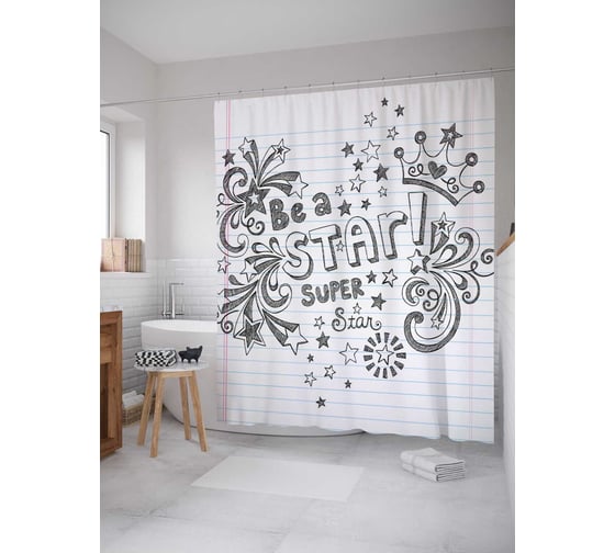 Штора (занавеска) для ванной JoyArty "Моя суперзвезда" из сатена, 180х200 см с крючками, sc_37300