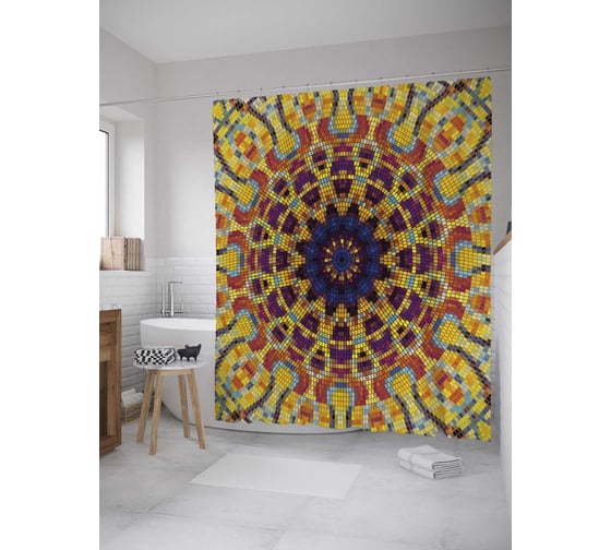 Штора (занавеска) для ванной JoyArty "Мозаичный орнамент" из сатена, 180х200 см с крючками, sc_36118