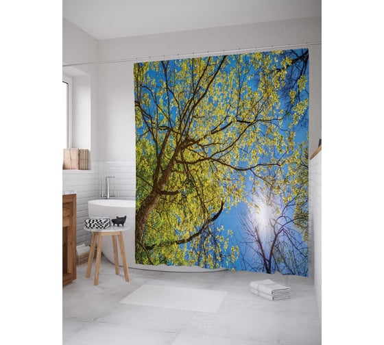 Штора (занавеска) для ванной JoyArty "Мудрый лес" из сатена, 180х200 см с крючками, sc_20664