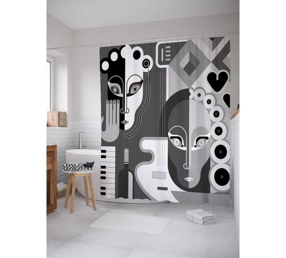 Штора (занавеска) для ванной JoyArty "Музыкальная маска" из сатена, 180х200 см с крючками, sc_22205