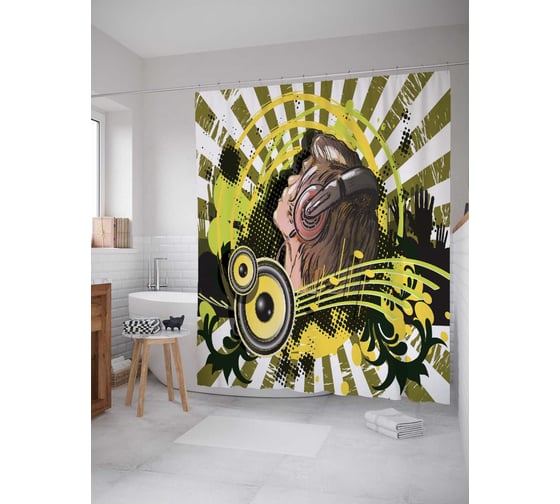Штора (занавеска) для ванной JoyArty "Музыкальное погружение" из сатена, 180х200 см с крючками, sc_12674