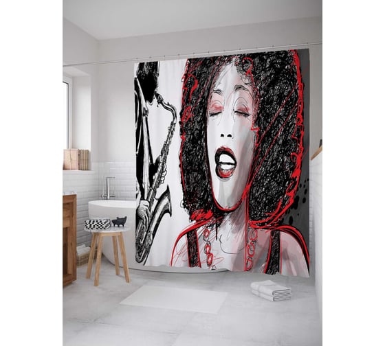 Штора (занавеска) для ванной JoyArty "Музыкальный фриссон" из сатена, 180х200 см с крючками, sc_23227