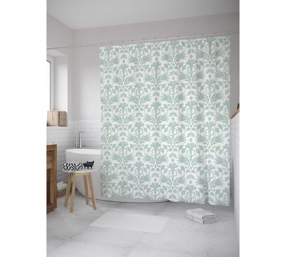 Сопутствующие товары для шторки-занавески JOYARTY Мятные листья из сатена, 180х200 см с крючками
