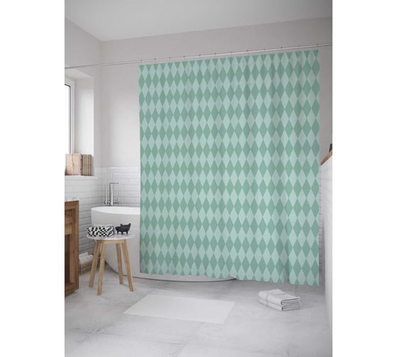 Штора (занавеска) для ванной JoyArty "Мятные ромбы" из сатена, 180х200 см с крючками, sc_33761