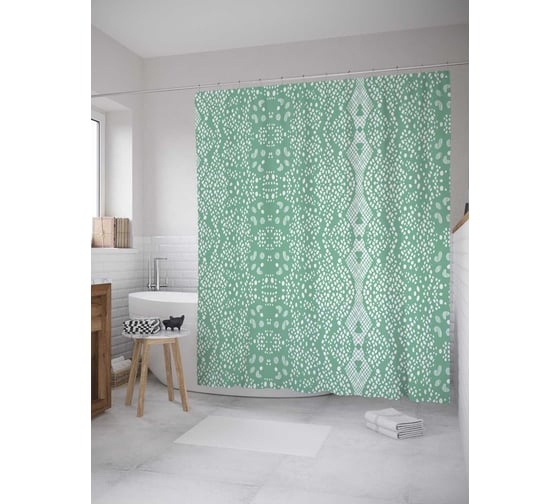 Штора (занавеска) для ванной JoyArty "Мятные цветы" из сатена, 180х200 см с крючками, sc_33385