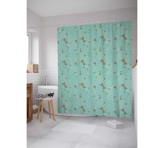 Сопутствующие товары для шторки-занавески JOYARTY Мятные волны из сатена, 180х200 см с крючками