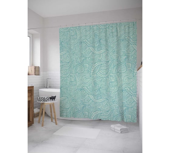 Сопутствующие товары для шторки-занавески JOYARTY Мятные завитки из сатена, 180х200 см с крючками