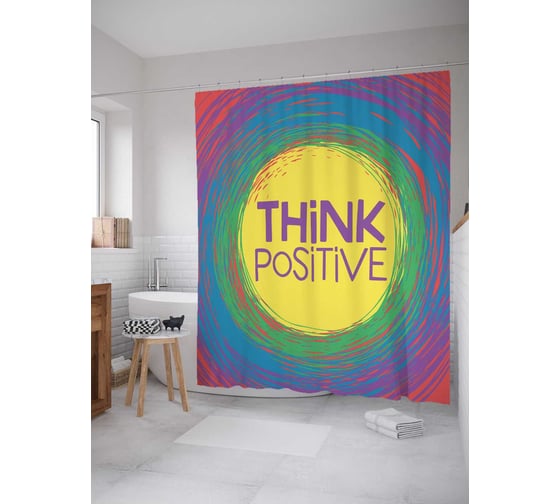 Штора (занавеска) для ванной JoyArty "Мысли позитивно" из сатена, 180х200 см с крючками, sc_70118
