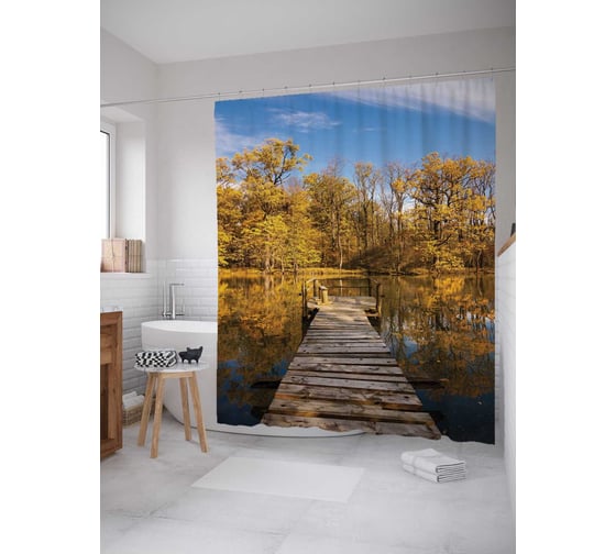 Штора (занавеска) для ванной JoyArty "Мысли зеркальной реки" из сатена, 180х200 см с крючками, sc_6525
