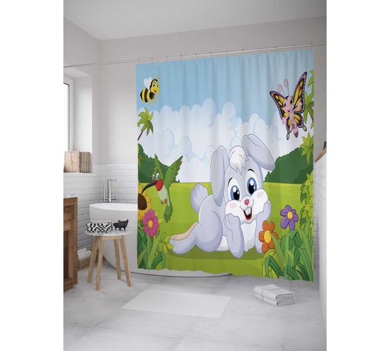 Штора (занавеска) для ванной JoyArty "На лужайке" из сатена, 180х200 см с крючками, sc_31590