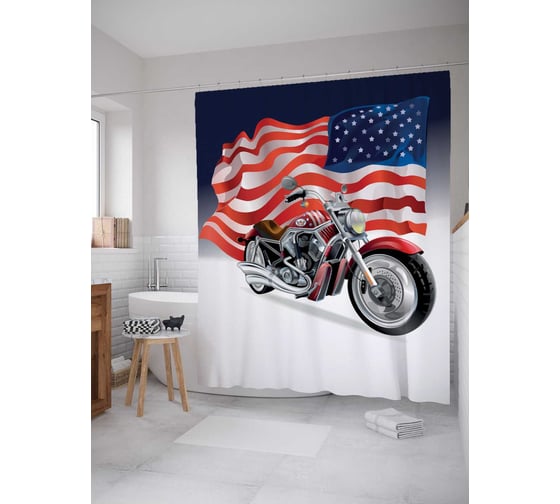 Штора (занавеска) для ванной JoyArty "На мотоцикле по Америке" из сатена, 180х200 см с крючками, sc_9936