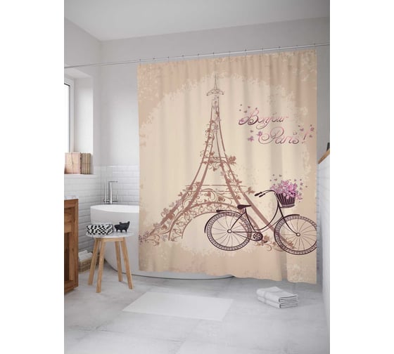 Штора (занавеска) для ванной JoyArty "На велосипеде в Париж" из сатена, 180х200 см с крючками, sc_1438
