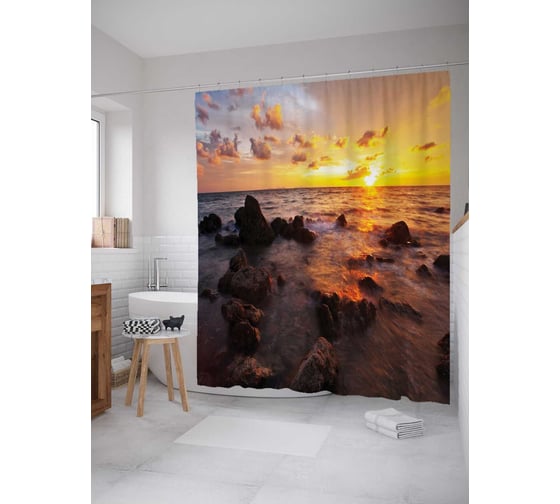 Штора (занавеска) для ванной JoyArty "Наблюдение заката" из сатена, 180х200 см с крючками, sc_10366