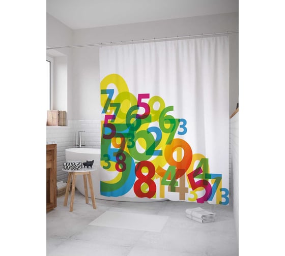 Штора (занавеска) для ванной JoyArty "Набор чисел" из сатена, 180х200 см с крючками, sc_21767
