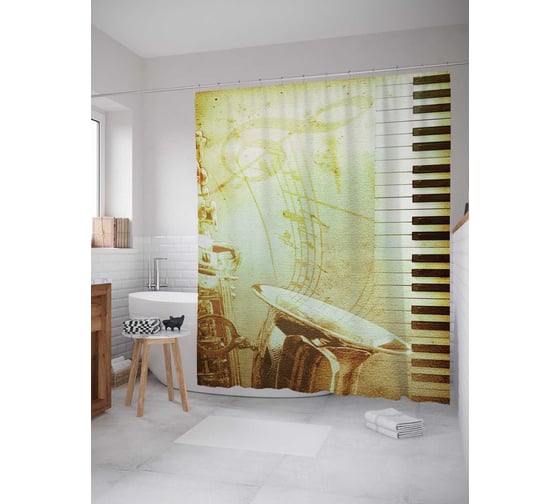 Штора (занавеска) для ванной JoyArty "Начинается песня" из сатена, 180х200 см с крючками, sc_14215