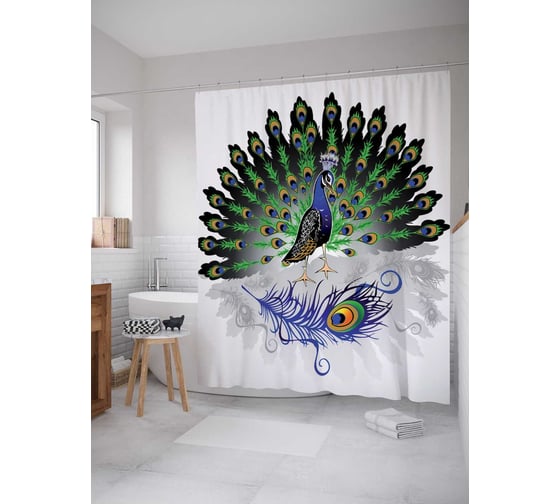 Штора (занавеска) для ванной JoyArty "Находка павлина" из сатена, 180х200 см с крючками, sc_12578
