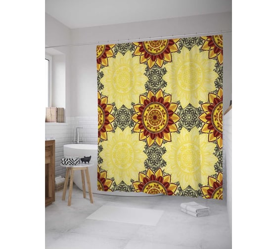 Штора (занавеска) для ванной JoyArty "Наложение ажура" из сатена, 180х200 см с крючками, sc_36126