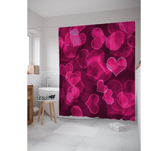 Штора (занавеска) для ванной JoyArty "Наложение сердец" из сатена, 180х200 см с крючками, sc_38993